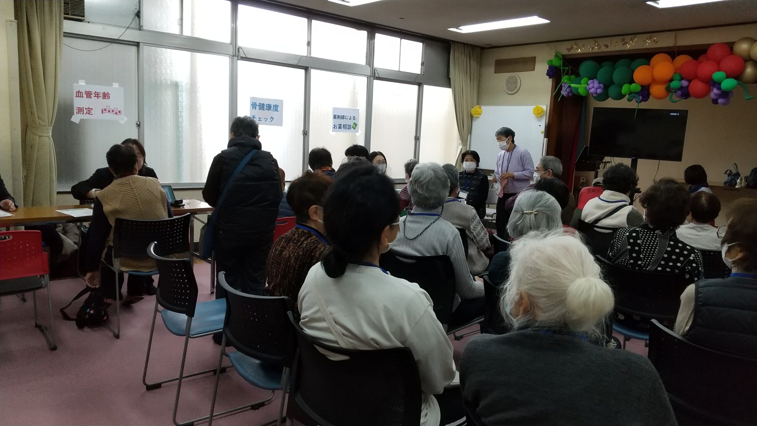 川崎区の地域包括支援センターさんで「お薬の飲み方」というテーマの講演と健康測定会をしました。