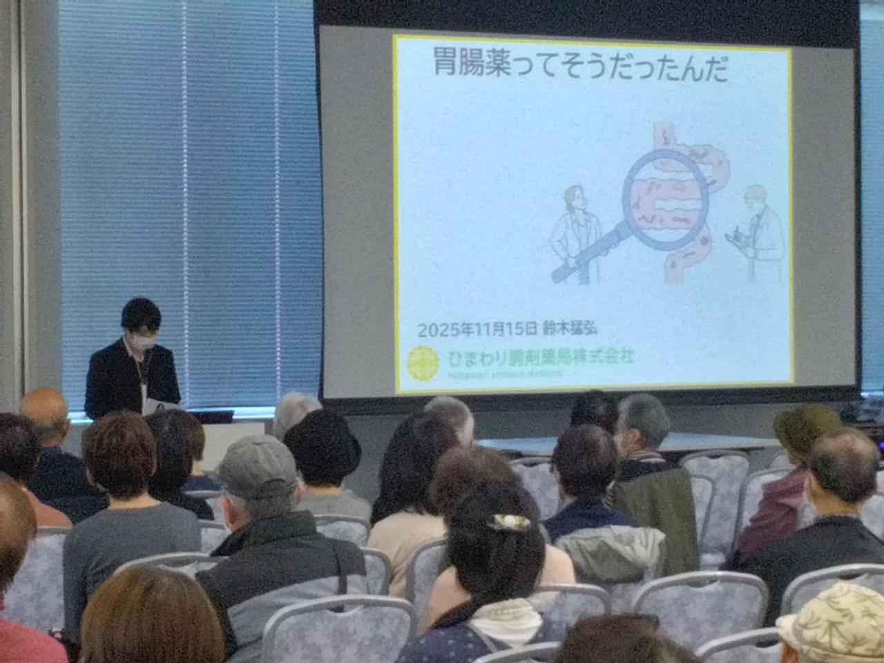 高津区のそんぽS川崎宮前様にて「お薬の使い方(便秘薬編)」をテーマに、講演と健康測定会をさせていただきました。